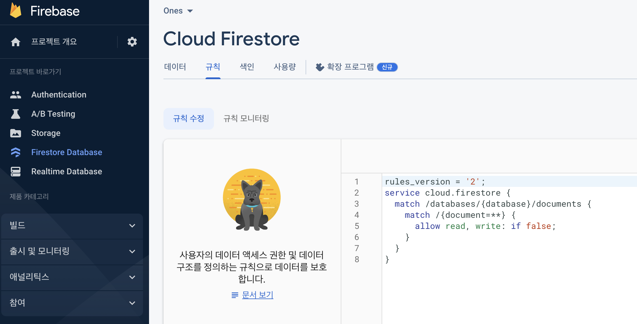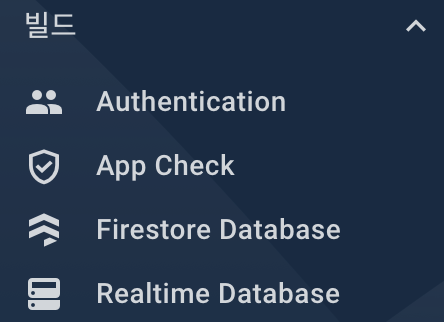 강의에서는 DB선택 란이 1개 이지만, 현재는 Firestore Database와 Realtime Database 2가지이다.