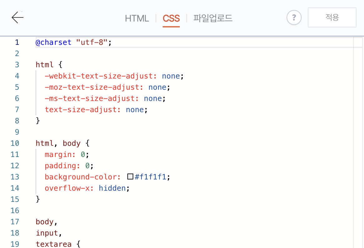 3. css 클릭 후 코드를 넣어준다. (2개만 넣어주면 된다.)