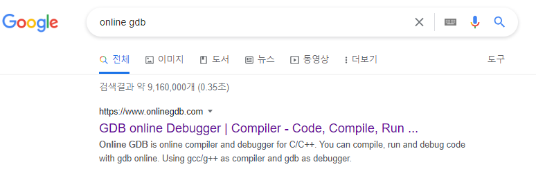 1. 구글에 online gdb를 검색하고 바로 뜨는 사이트를 클릭한다.