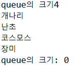 System.out.println("queue의 크기: " + queue.size() ); //while에서 다씀.