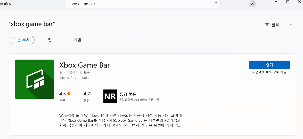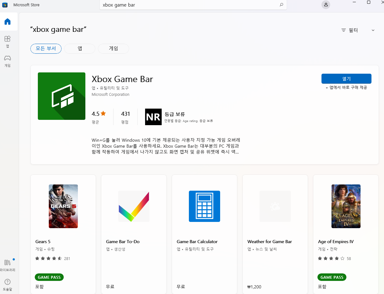 4. Xbox Game Bar를 업데이트 한다.